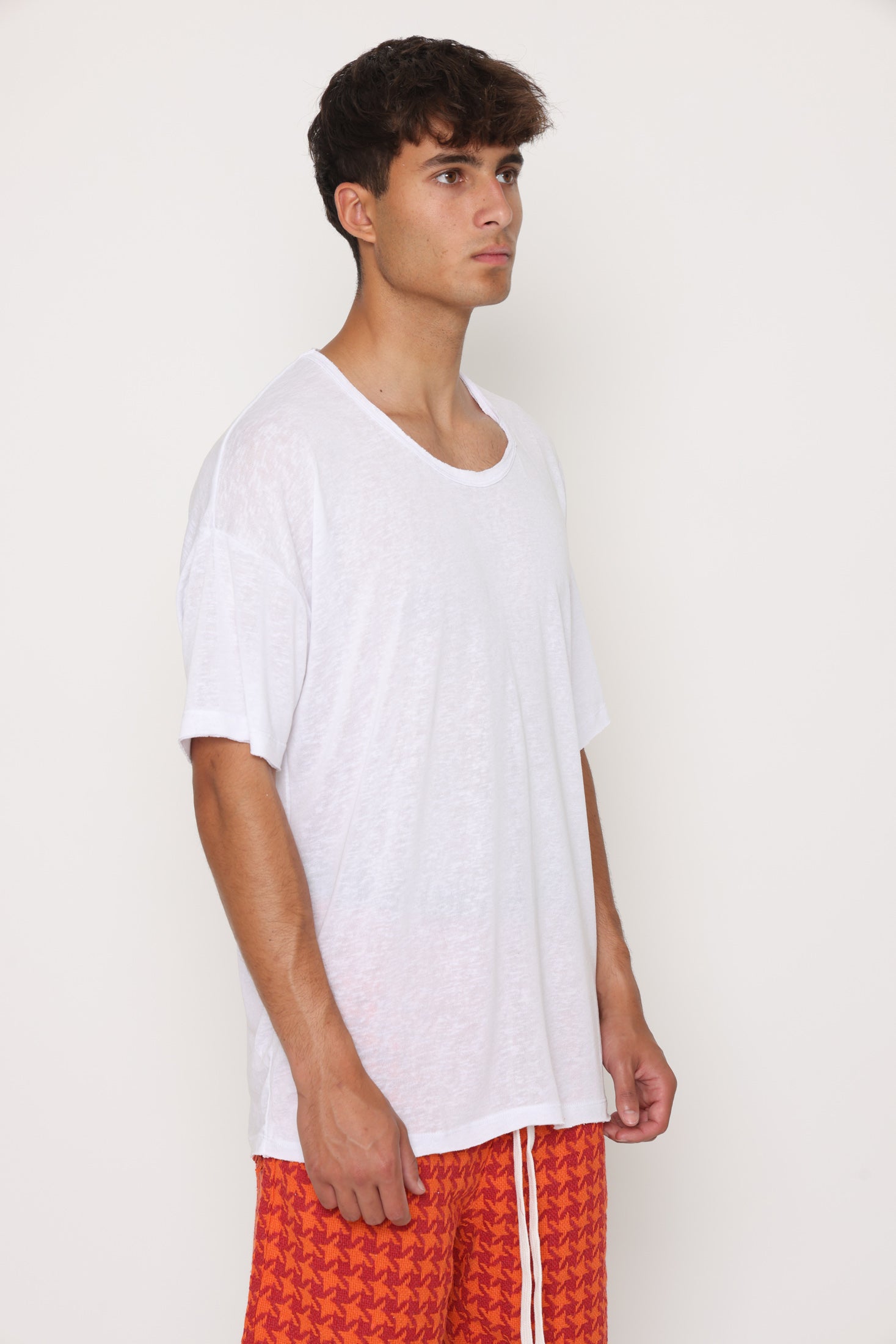 טי שרט מבד כותנת פשתן בגזרה משולמת