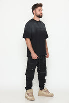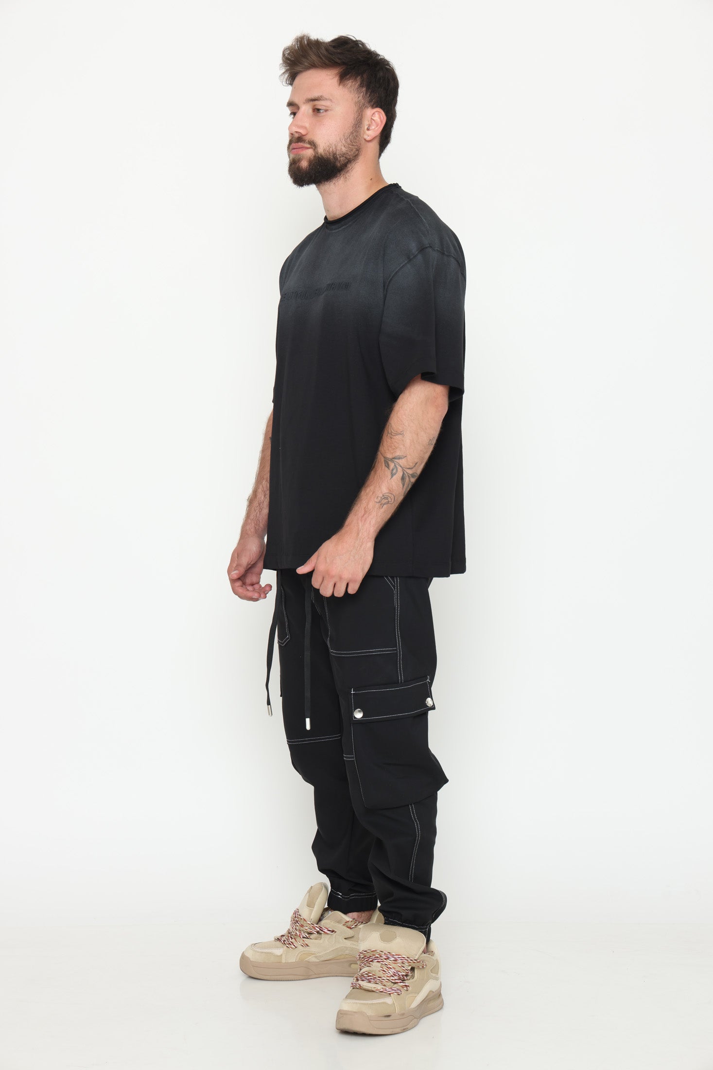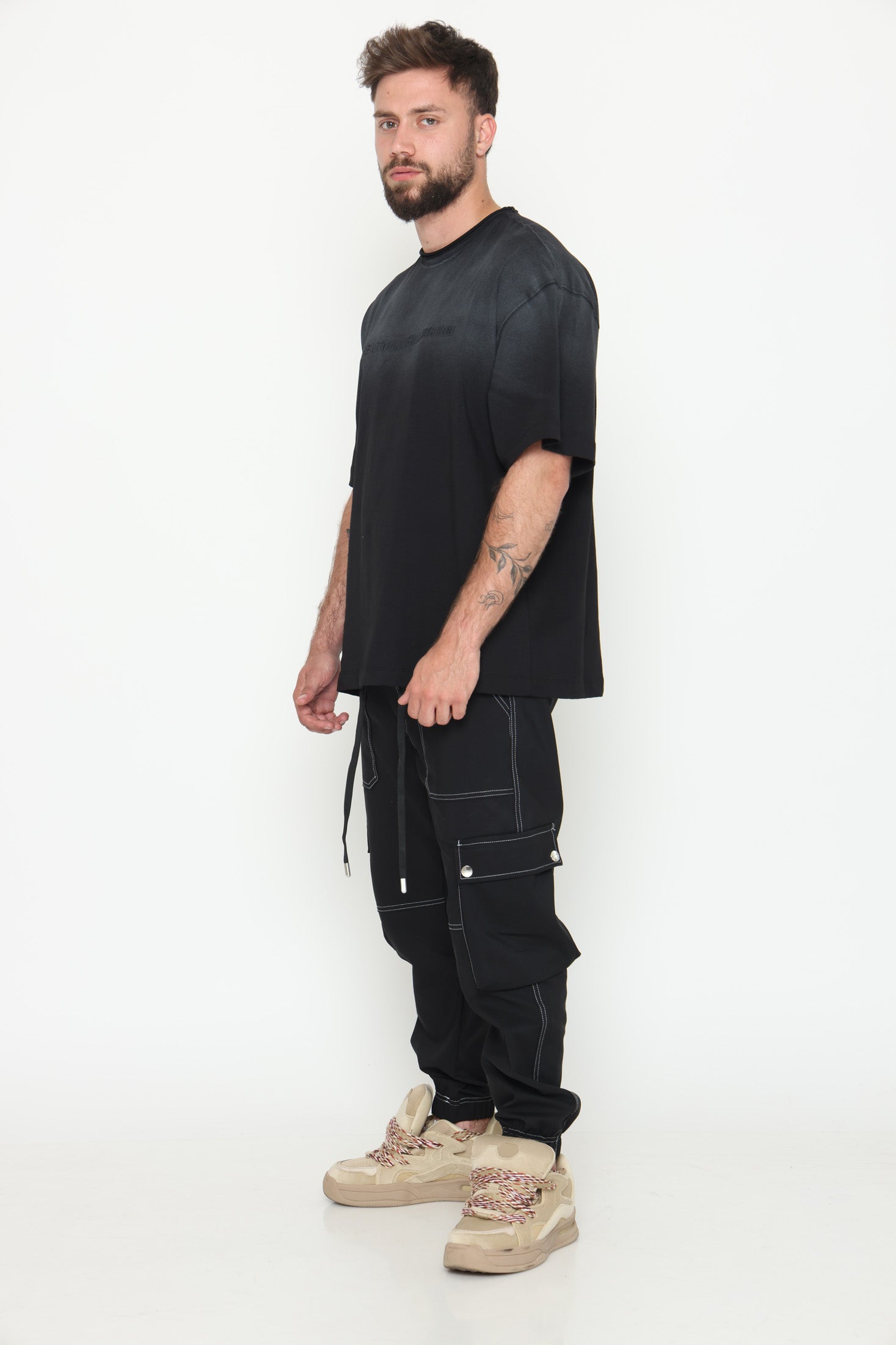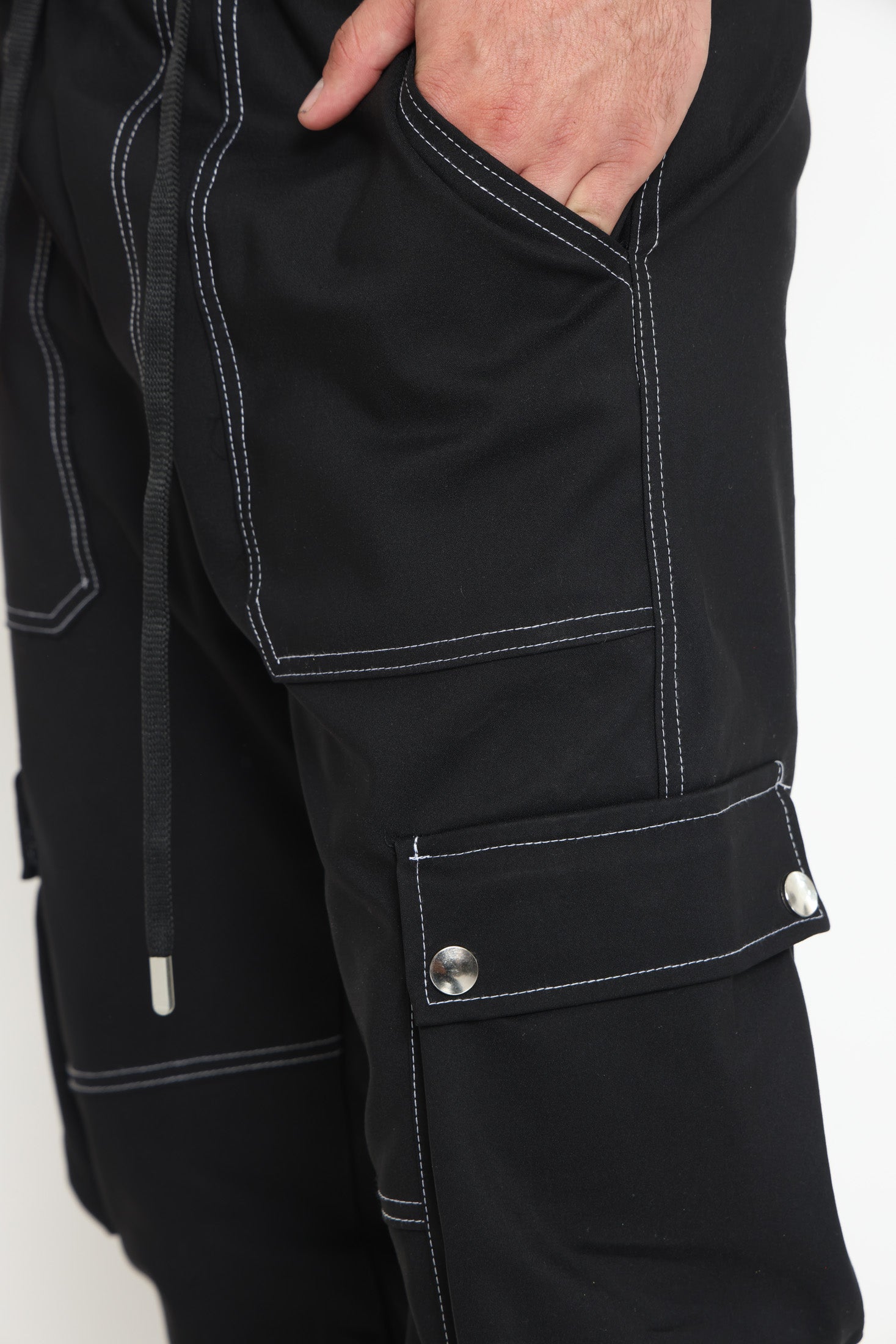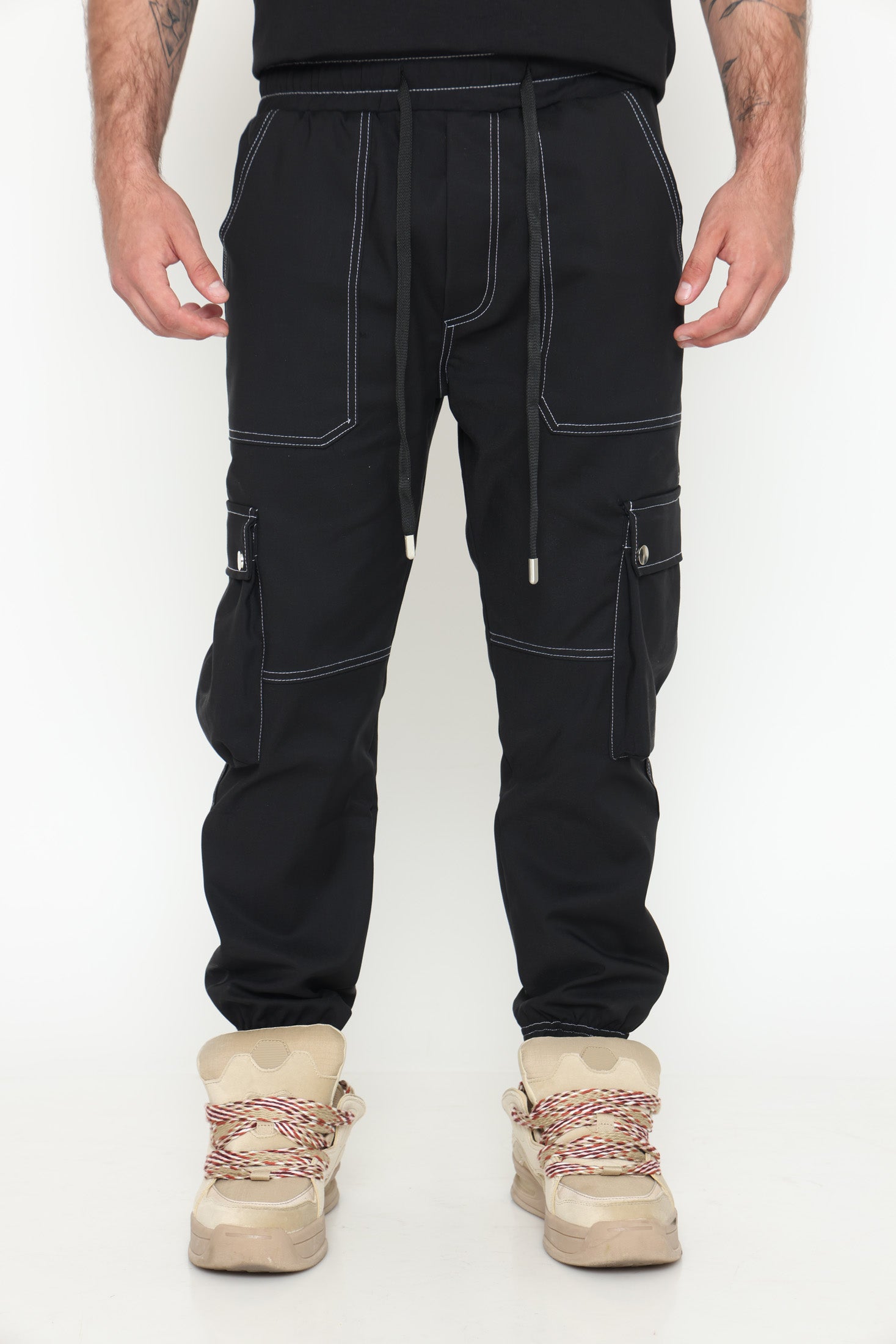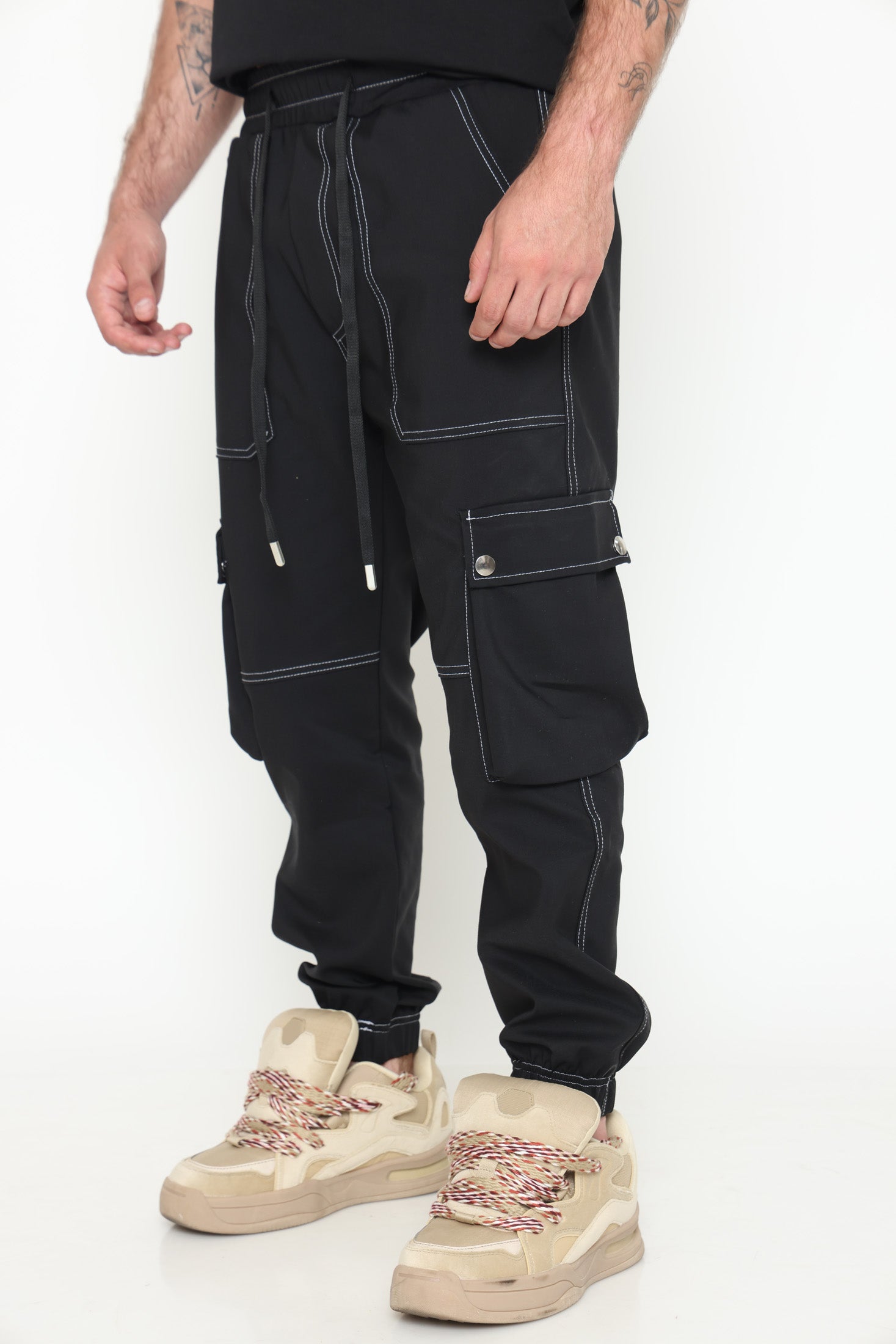 מכנס דגמ״ח שחור עם תפרים לבנים